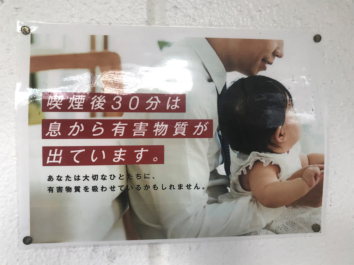 また喫煙者には、喫煙場所を設け、分煙するようこころがけています。