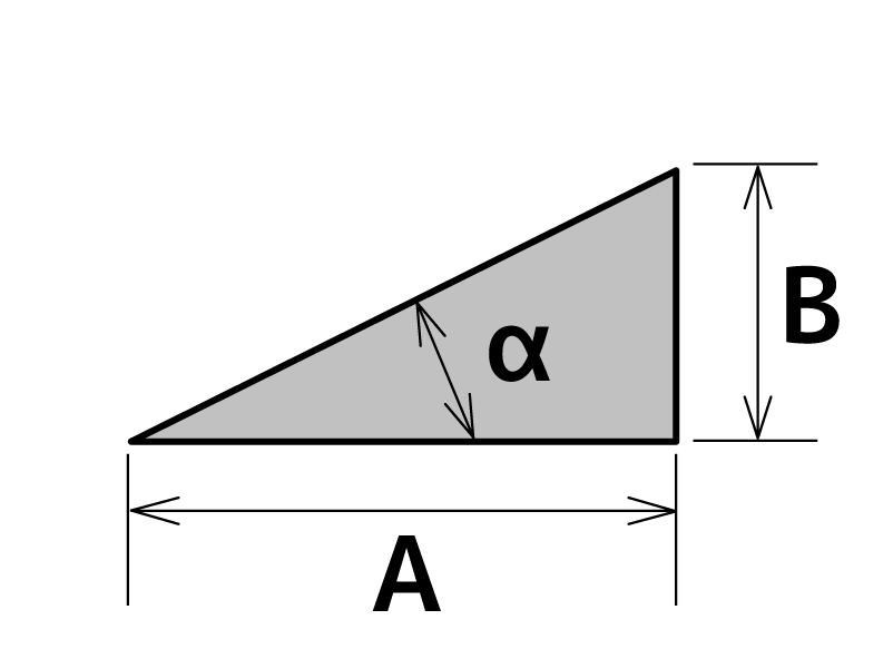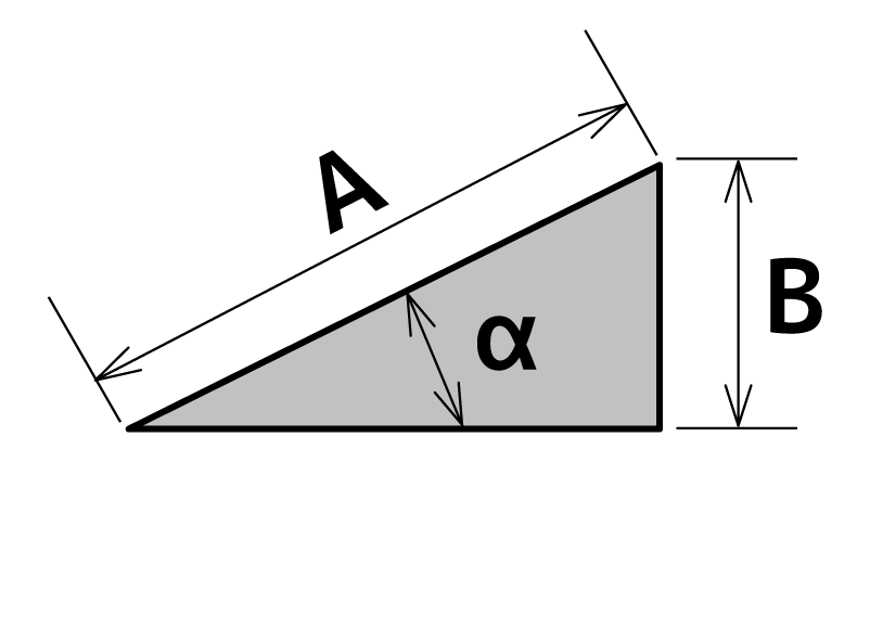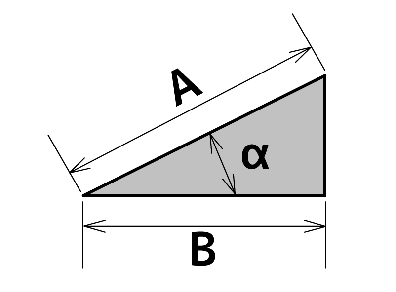 | B = A x sin α | B = A x cos α | B = A x tan α |